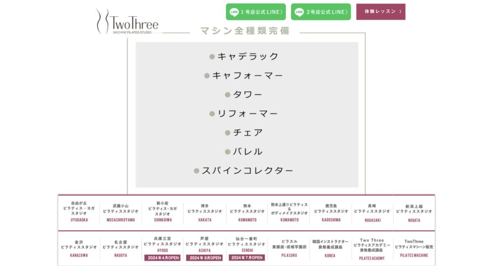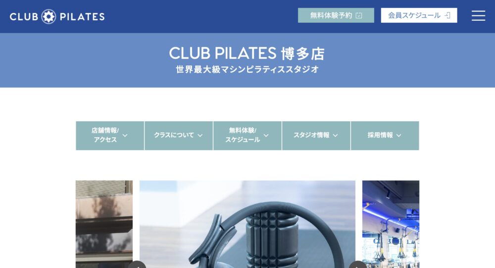 | CLUB PILATES 博多 | マシンピラティスを中心に32通りのレッスン内容から選択可能 |